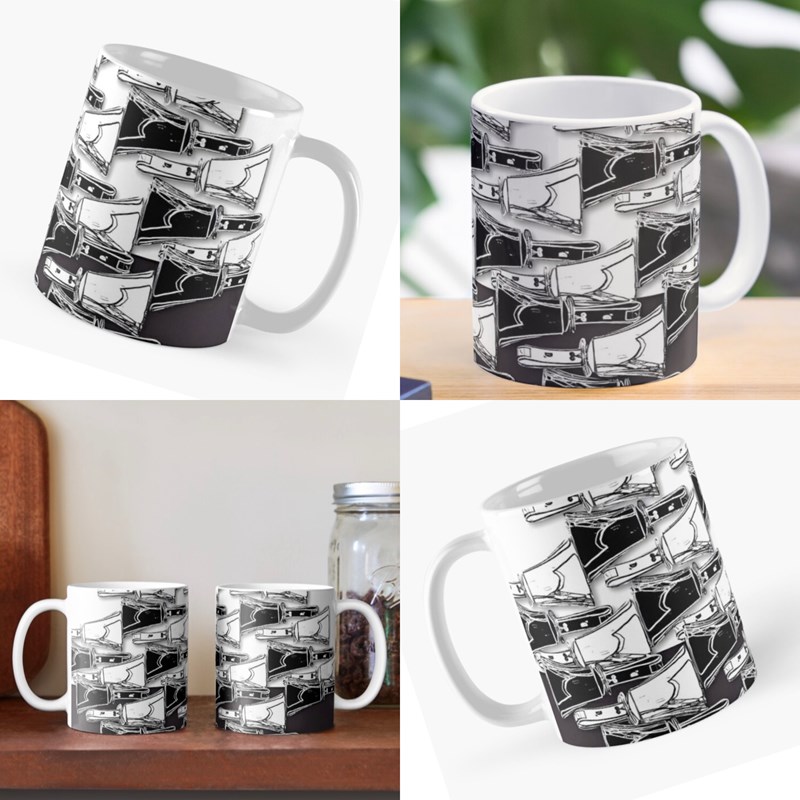 > Digital Creations Digital Creations Pop Art Serial Handbell Grid tall mug from Celtic Clapper Creations Funky drip art handbell image mug from Celtic Clapper Creations